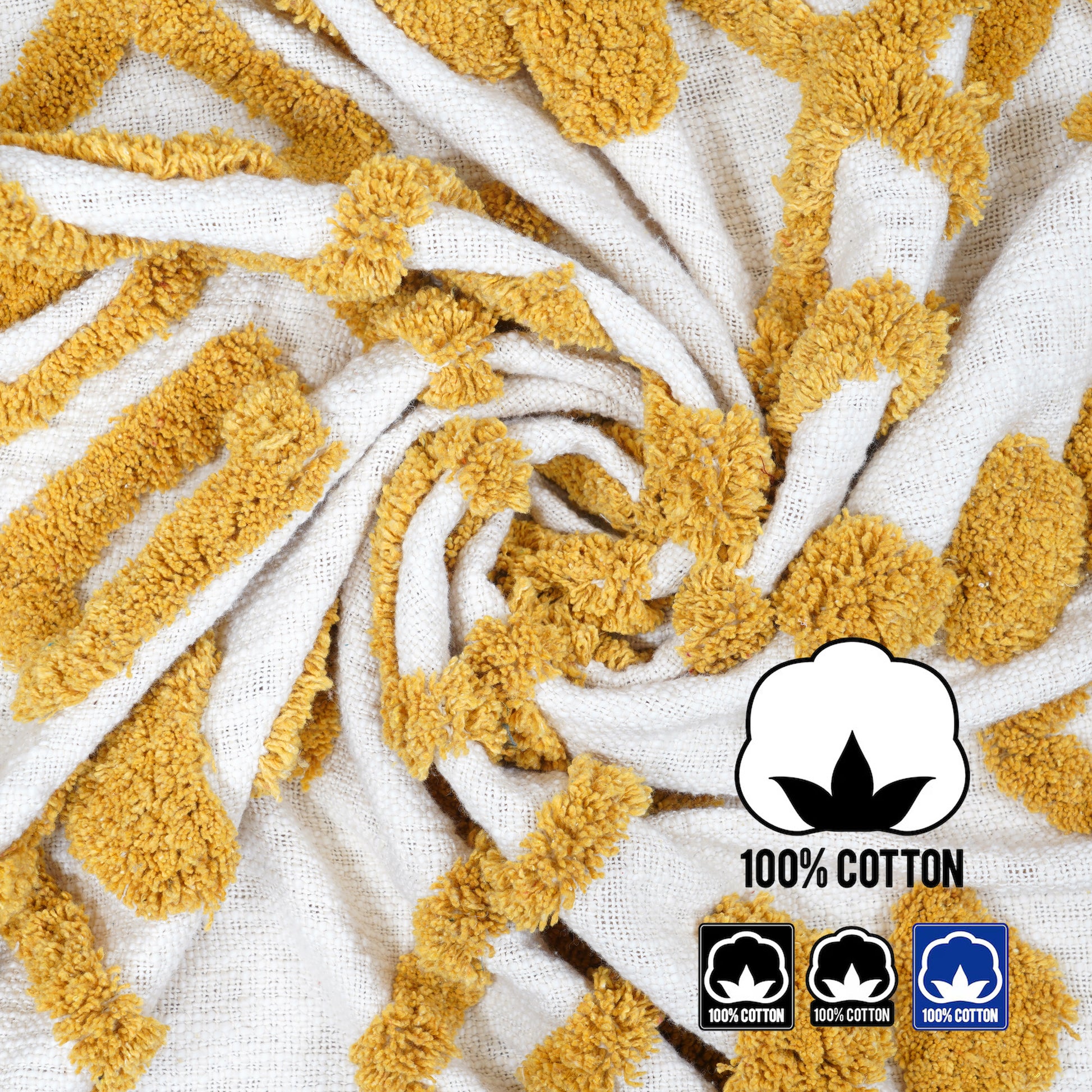 Elevate your living space with our beautifully handcrafted Cotton Tufted Throw, designed with intricate mustard yellow geometric motifs on a soft ivory base. Made from 100% premium cotton, this versatile throw adds warmth, texture, and a bohemian charm to your sofa, bed, or lounge area.