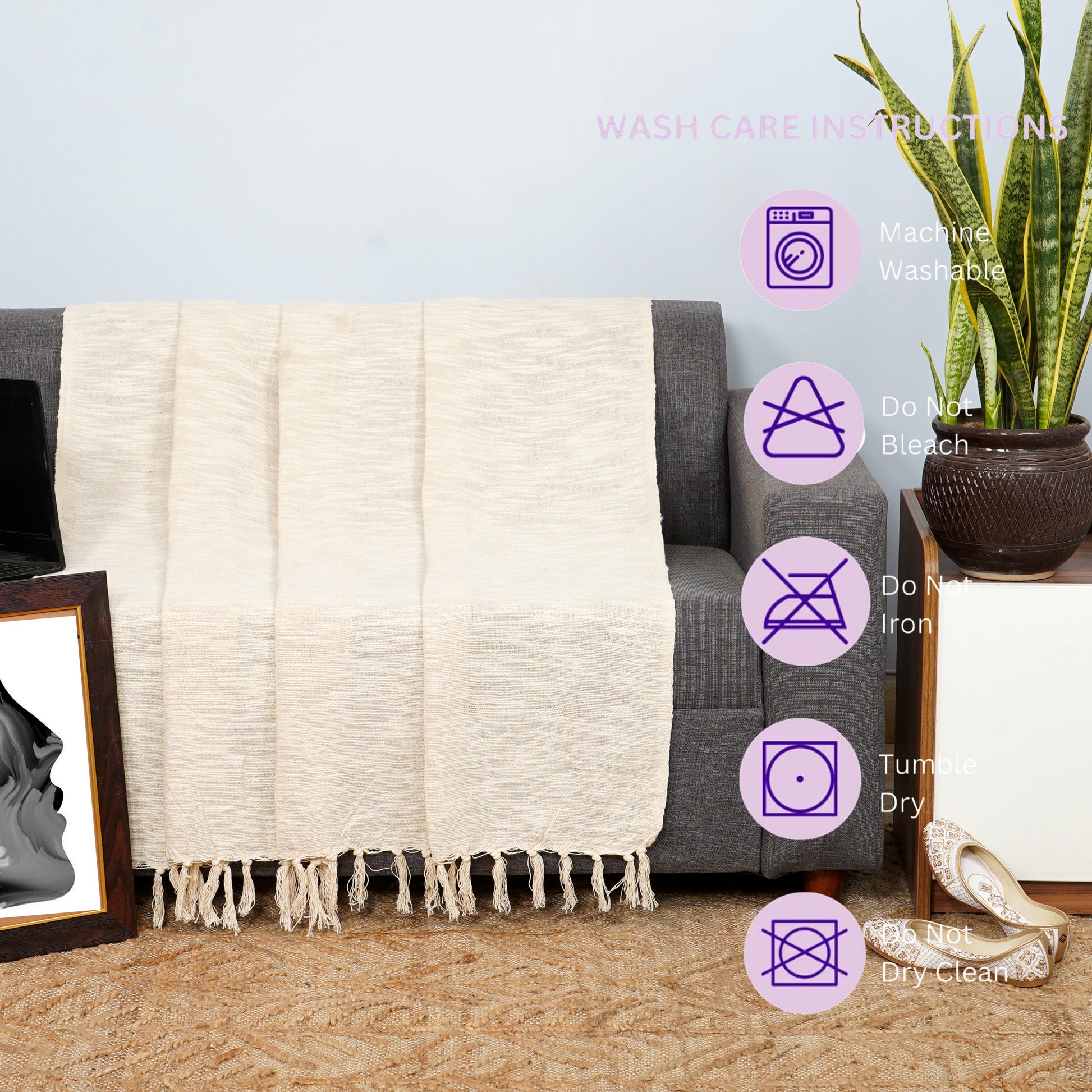 Add a touch of elegance and comfort to your home with this Handwoven Cotton Sofa Throw in a soothing ivory beige shade. Crafted from 100% premium cotton, this lightweight throw features a subtle textured weave and soft tassel detailing, making it a versatile décor essential.