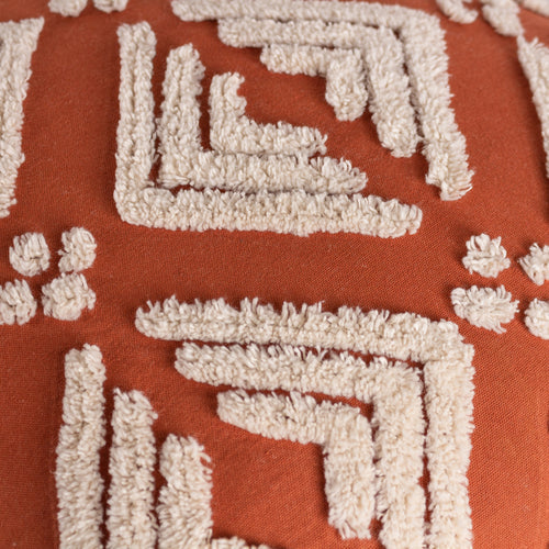 Rust Red & Cream Tufted Geometric Throw Pillow | Boho Diamond Accent Cushion Cover
